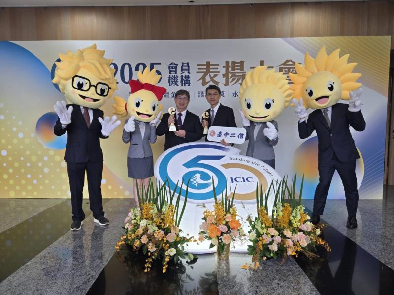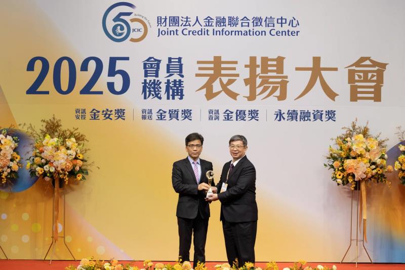 聯徵中心114年12月23日舉辦「第十九屆金安獎及金質獎暨金優獎表揚大會」,公開獎勵會員機構及其績優人員對於落實「資訊安全保密」、「報送信用資料」及「信用資訊查詢」之貢獻,本社獲頒「金安獎」殊榮。圖一:台中二信榮獲聯徵中心頒發「金安獎」肯定【台中二信曾嘉盛副總經理(左三)、金安獎獲獎者邱冠仁副理(右三)】圖二:台中二信榮獲聯徵中心頒發「金安獎」肯定,由本社副總經理曾嘉盛(右)代表接受金管會主委彭金隆(左)頒獎表揚。圖三:本社副理邱冠仁(右)榮獲「金安獎」績優人員肯定,由金管會主委彭金隆(左)頒獎表揚。