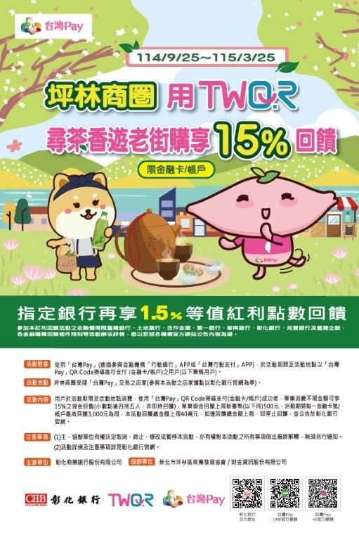 【台灣PAY優惠活動】坪林商圈用TWQR尋茶香遊老街購享15%回饋