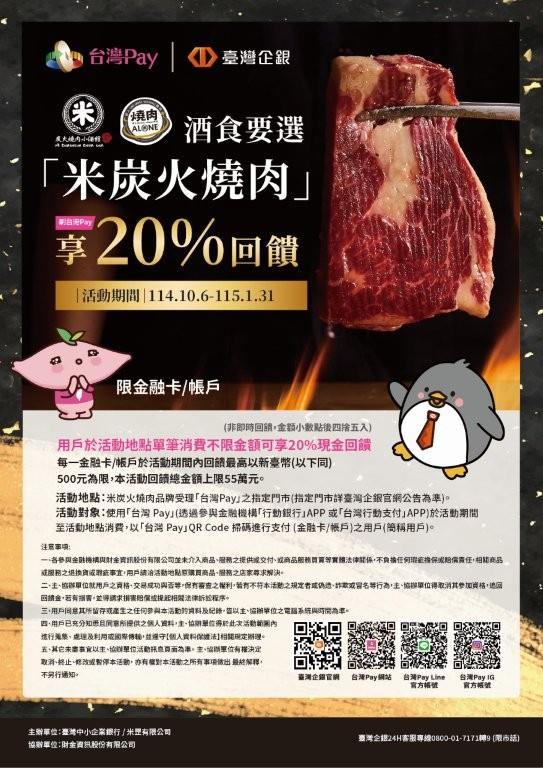 【台灣PAY優惠活動】酒食要選「米炭火燒肉」 刷台灣Pay享20%回饋