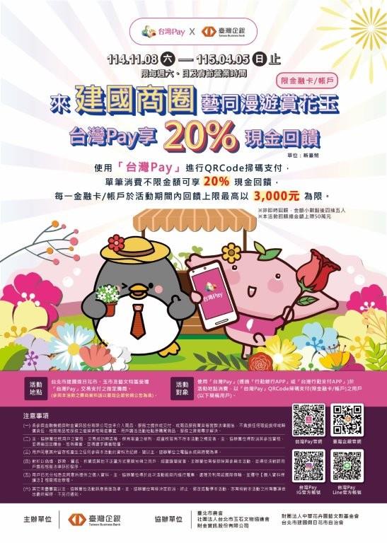 【台灣PAY優惠活動】來建國商圈藝同漫遊賞花玉 台灣Pay享20%現金回饋