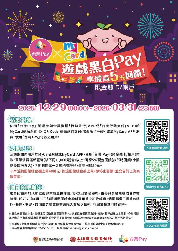 【台灣PAY優惠活動】台灣Pay x MyCard遊戲黑白Pay,享最高5%回饋!